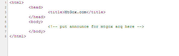 Is Mt. Gox about to be acquired? Go to mtgox.com (just a blank page) and view source. pic.twitter.com/Qm6epSYUSG