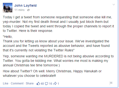 So how’s that abuse policy working out, @Twitter? facebook.com/permalink.php?… pic.twitter.com/TSnfWkfCIP