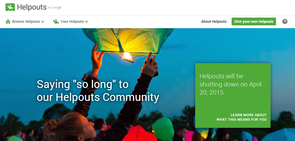 Google is shutting down Google Helpouts. Great idea, but it never caught on.