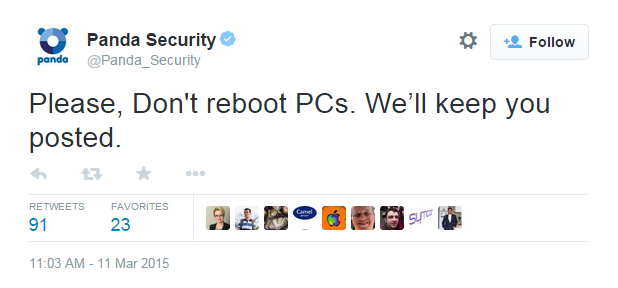 Panda antivirus mistakenly flags itself as malware, bricks PCs j0e.co/25l #nightmare pic.twitter.com/eYHdVCb0FA