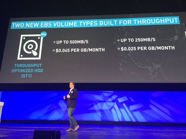 Amazon just announced two new EBS Volume Types for better throughput #AWSSummit pic.twitter.com/XAIW8zyAid