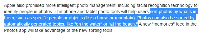 Auto photo tagging, proactive suggestions based on your calendar.. So much for Apple not looking at your data. #WWDC2016