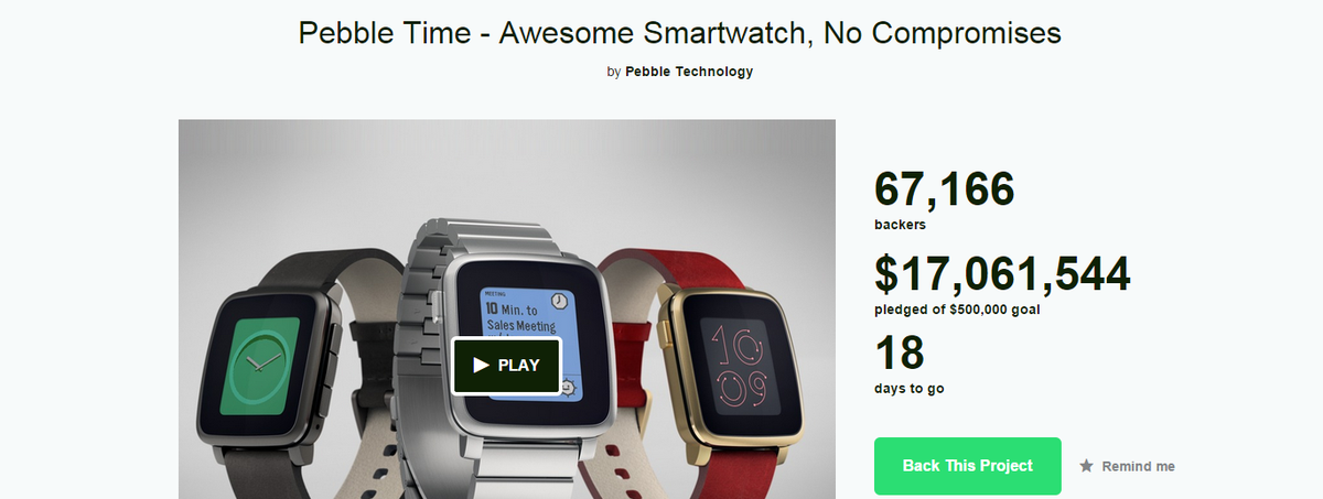 So, I wonder if the #Pebble kickstarter will go down after the #AppleWatch announcement. Would people pull out? pic.twitter.com/UeSaz8nAxL