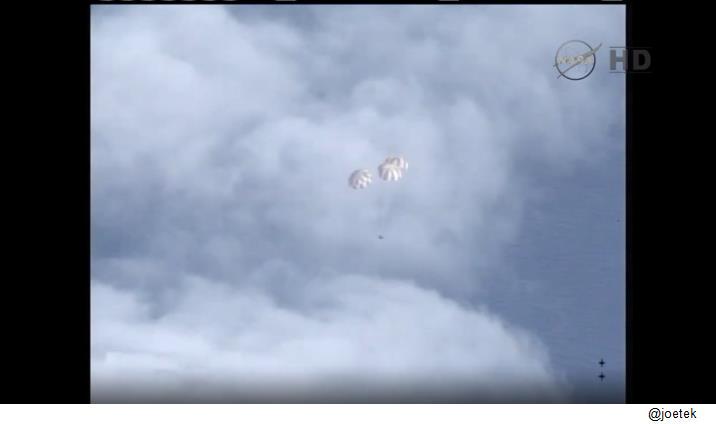Parachutes are out. A few minutes to splashdown. #Orion #OrionLaunch pic.twitter.com/SmwdVb3dVC