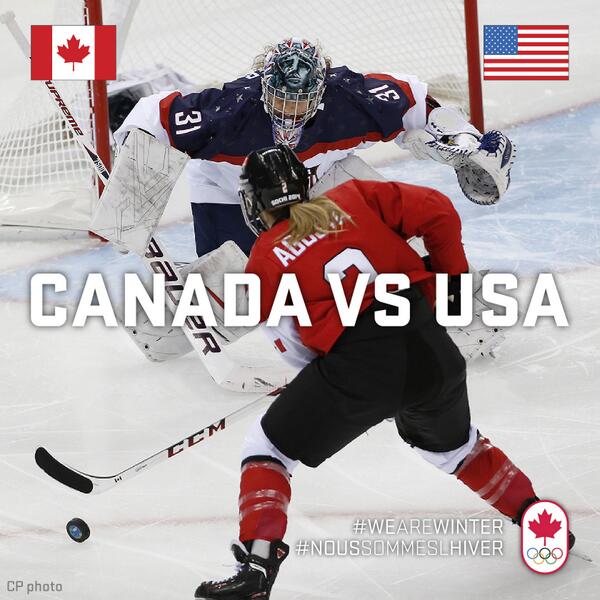 Canada vs. US in the Gold Medal Womens Hockey Game starts in 10 minutes! #WeAreWinter #Sochi2014 pic.twitter.com/TicpjISZmZ